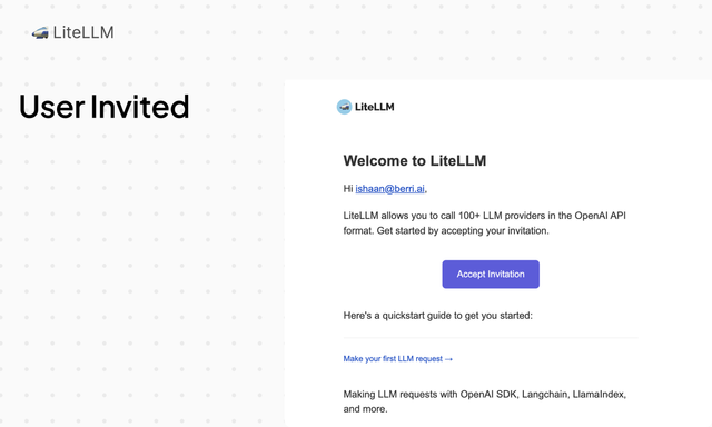 | Invitation Subject | EMAIL_SUBJECT_INVITATION | string | "LiteLLM: New User Invitation" | "Welcome to Your Company!" | Subject line for invitation emails |